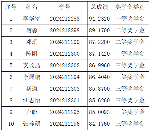 春满四合院 2024级硕士研究生2024-2025学年学业奖学金公示