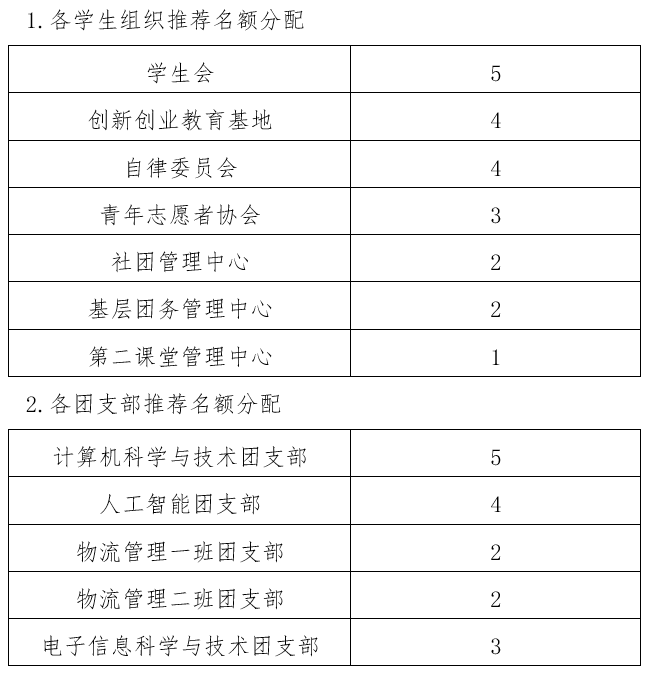 2.各学生组织、团支部按名额择优推荐,附推荐意见(附件1),填写汇总表(附件2),纸质版材料(附件1)于11月17日12点前交至南讲堂214,电子版材料(报名表、汇总表)放入一个文件夹,以压缩包形式发送至1834313413@qq.com,压缩包和邮件主题均需命名为【团支部(学生组织)全称-青马学员申报】,电子版材料截止时间与纸质版材料提交截止时间一致。
