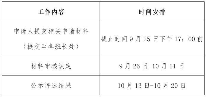 二、奖学金评定工作时间安排: