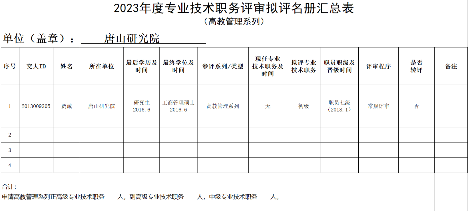 2023年度专业技术职务评聘拟评人员名册汇总表