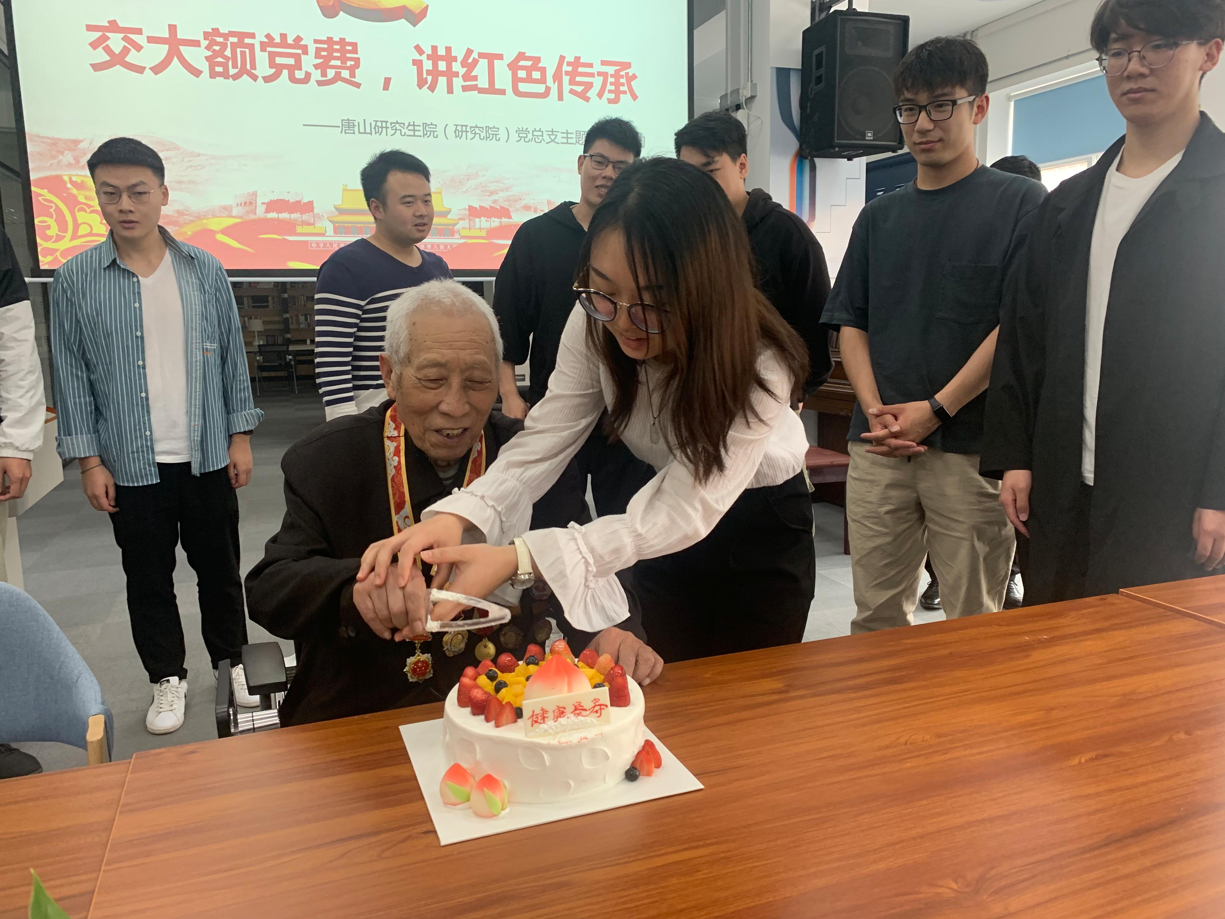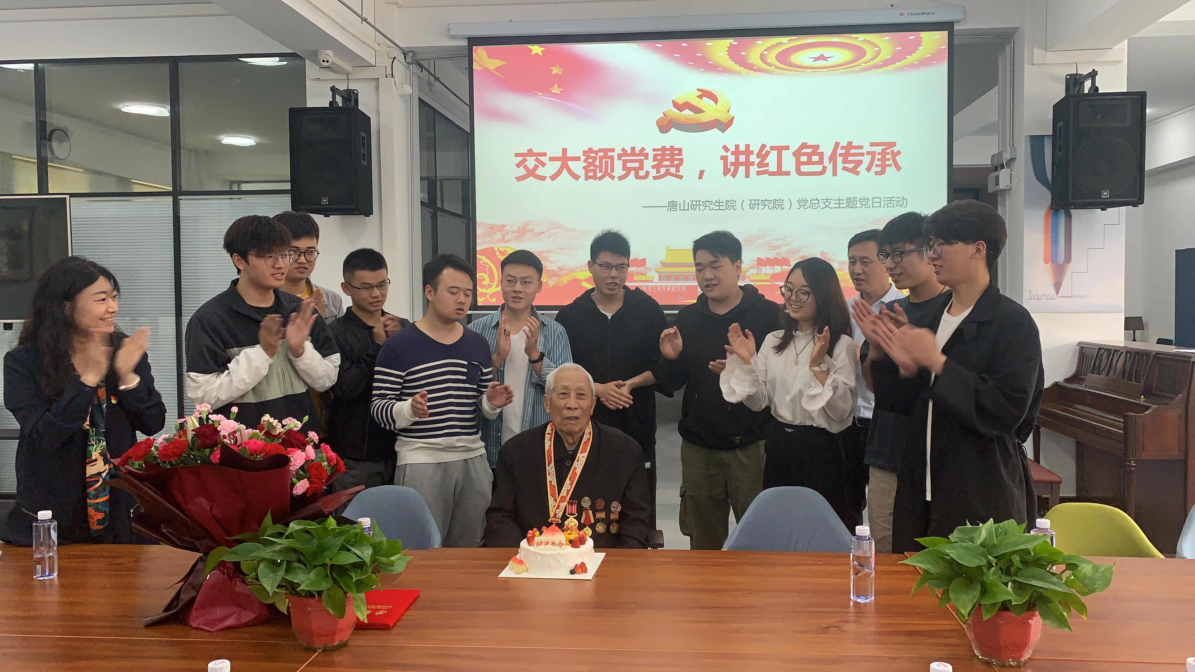 513日下午,唐山研究生院(研究院)党总支举办了一次特别的主题党日活动:耄耋党员张恩臣老师为党庆生,向党组织交上了一笔特殊的党费。唐山研究生院(研究院)师生党员代表参加此次活动。