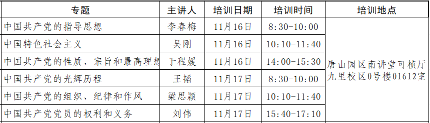 培训实行课堂教学、实践教学和自主学习相结合的培养方式。课堂教学由各分党校聘请党课教师老师主讲,实践教学由党课班主任(郭宗鑫)组织实施,自学互学可与学生党团活动等环节相结合。