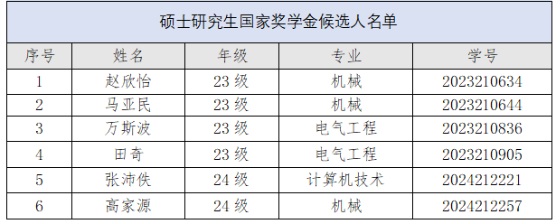 奖助工作委员会初评,共有6名硕士研究生推荐为硕士研究生国家奖学金候选人,现将硕士研究生国家奖学金候选人答辩工作相关安排通知如下: