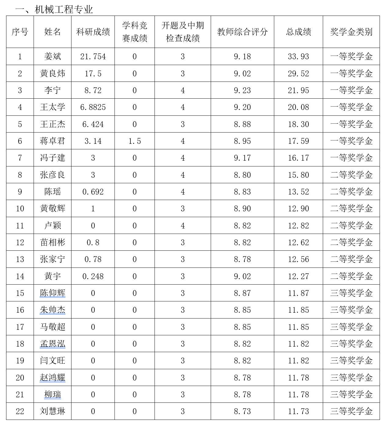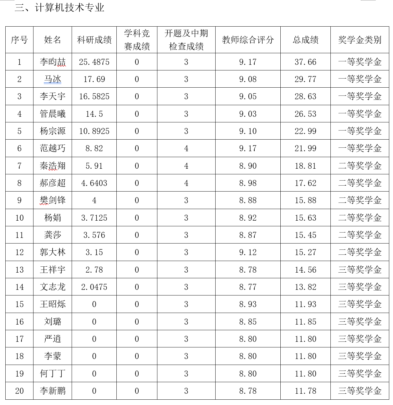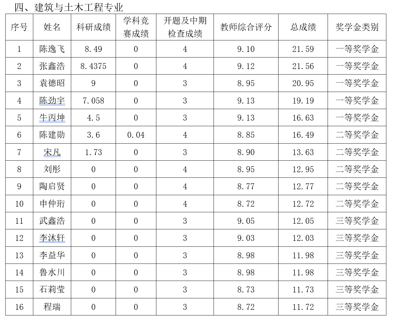根据《春满四合院 唐山研究生院研究生奖(助)学金评定办法》,按综合成绩排名确定最终获奖类别(综合总成绩=科研成绩+学科竞赛成绩+开题及中期检查成绩+教师综合评分),现将2019级2020-2021学年研究生学业奖学金获奖名单公示如下: