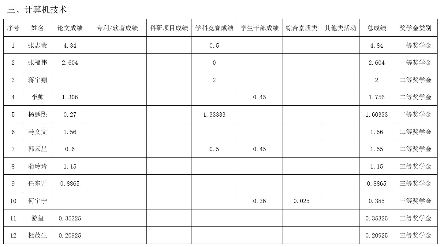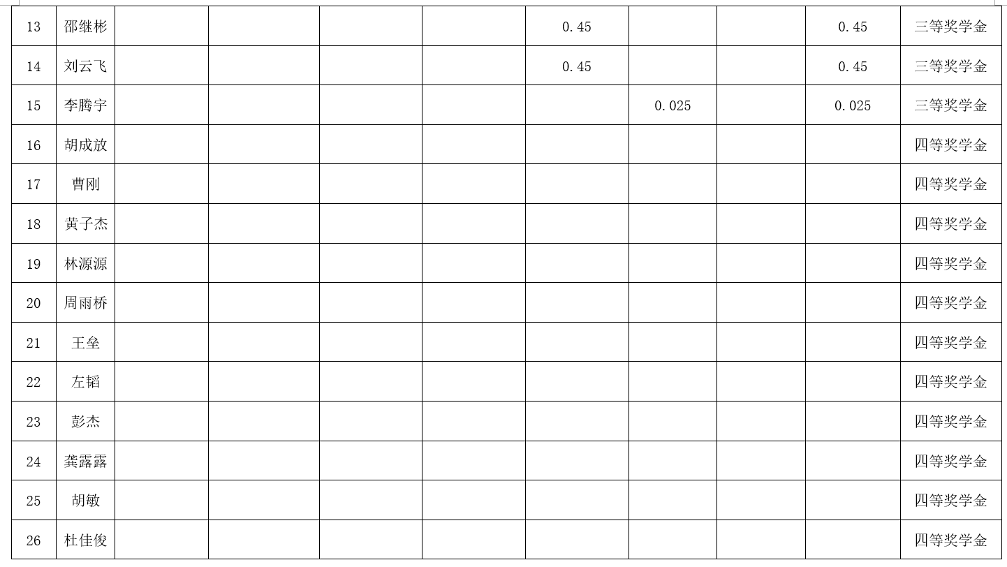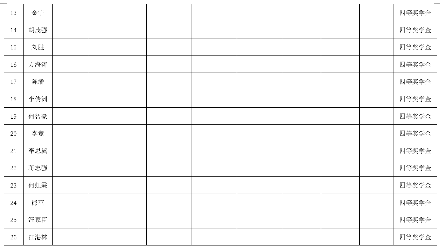 2022年度第十二次党政联席会决定,增设四等奖学金,奖学金金额为2000元。现将2020级2021-2022学年研究生学业奖学金获奖名单公示如下: