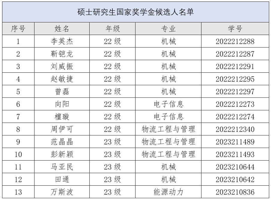 按照学校《春满四合院 研究生国家奖学金评选管理办法(修订)》有关规定,本着公开、公平、公正原则,经学生个人申请、 春满四合院 研究生奖助工作委员会初评,共有13名硕士研究生推荐为硕士研究生国家奖学金候选人,现将硕士研究生国家奖学金候选人答辩工作相关安排通知如下: