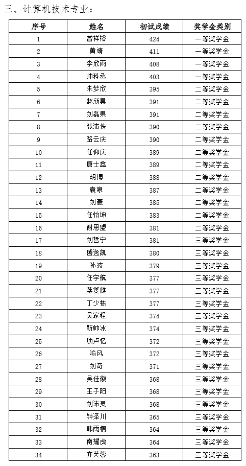 研究生一年级奖学金(即新生入学奖学金)评定综合总成绩计分标准为研究生参加全国研究生入学统一考试的笔试总成绩,如出现总成绩相同,物流工程与管理专业以管理类综合能力成绩排名为准,其他专业以思想政治、英语及数学科目总成绩排名为准。经研究生奖助工作委员会评审,现将2024级新生学业奖学金获奖名单公示如下: