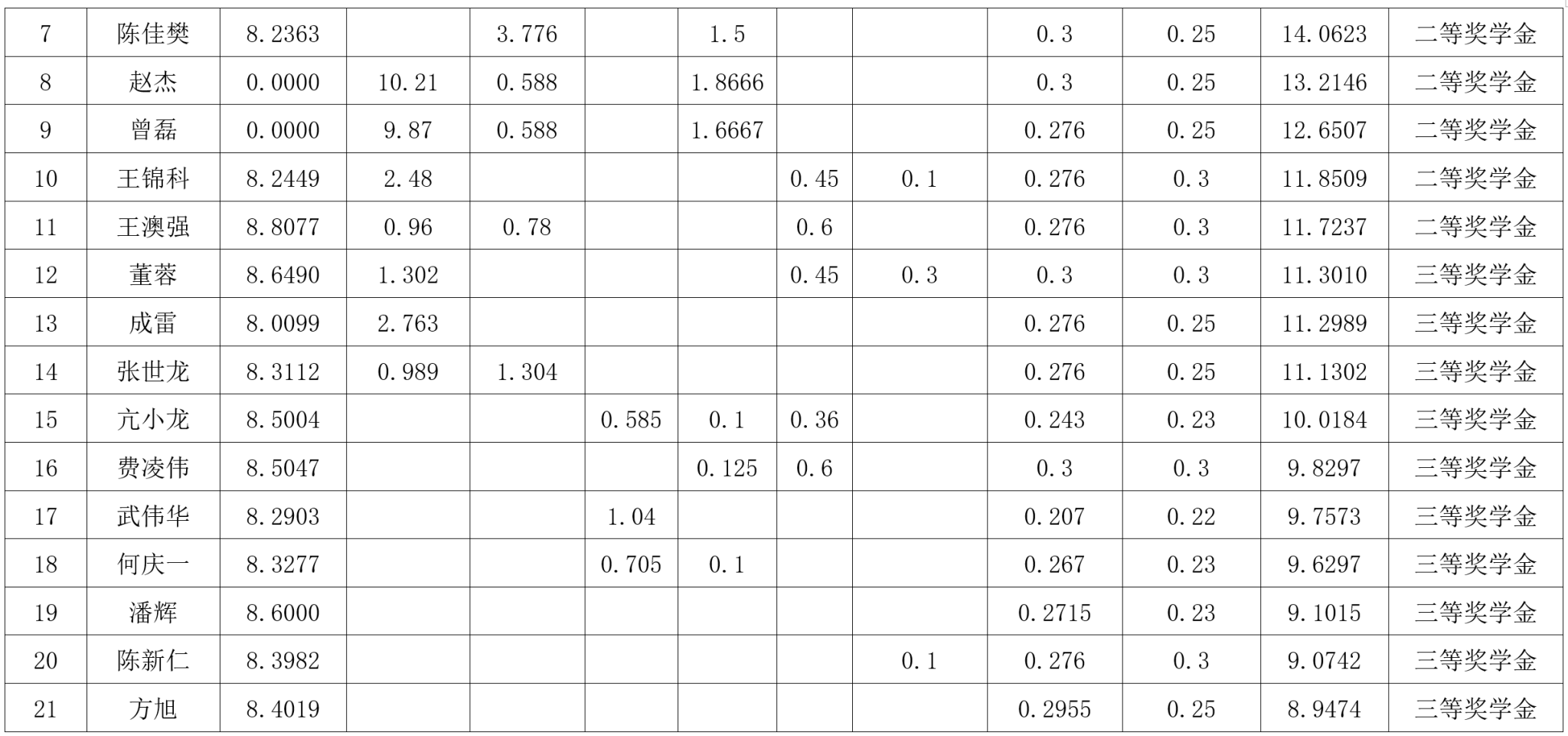 2022级2023-2024学年学业奖学金公示