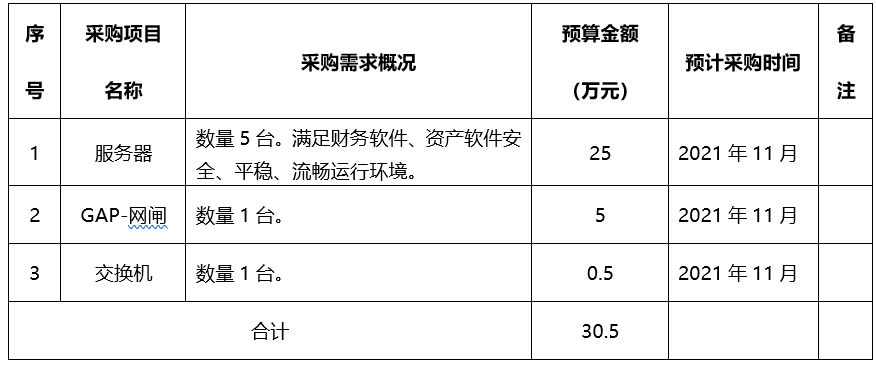 为便于供应商及时了解本单位采购信息,现将春满四合院 财务软件、资产软件运行环境设备采购意向公开如下: