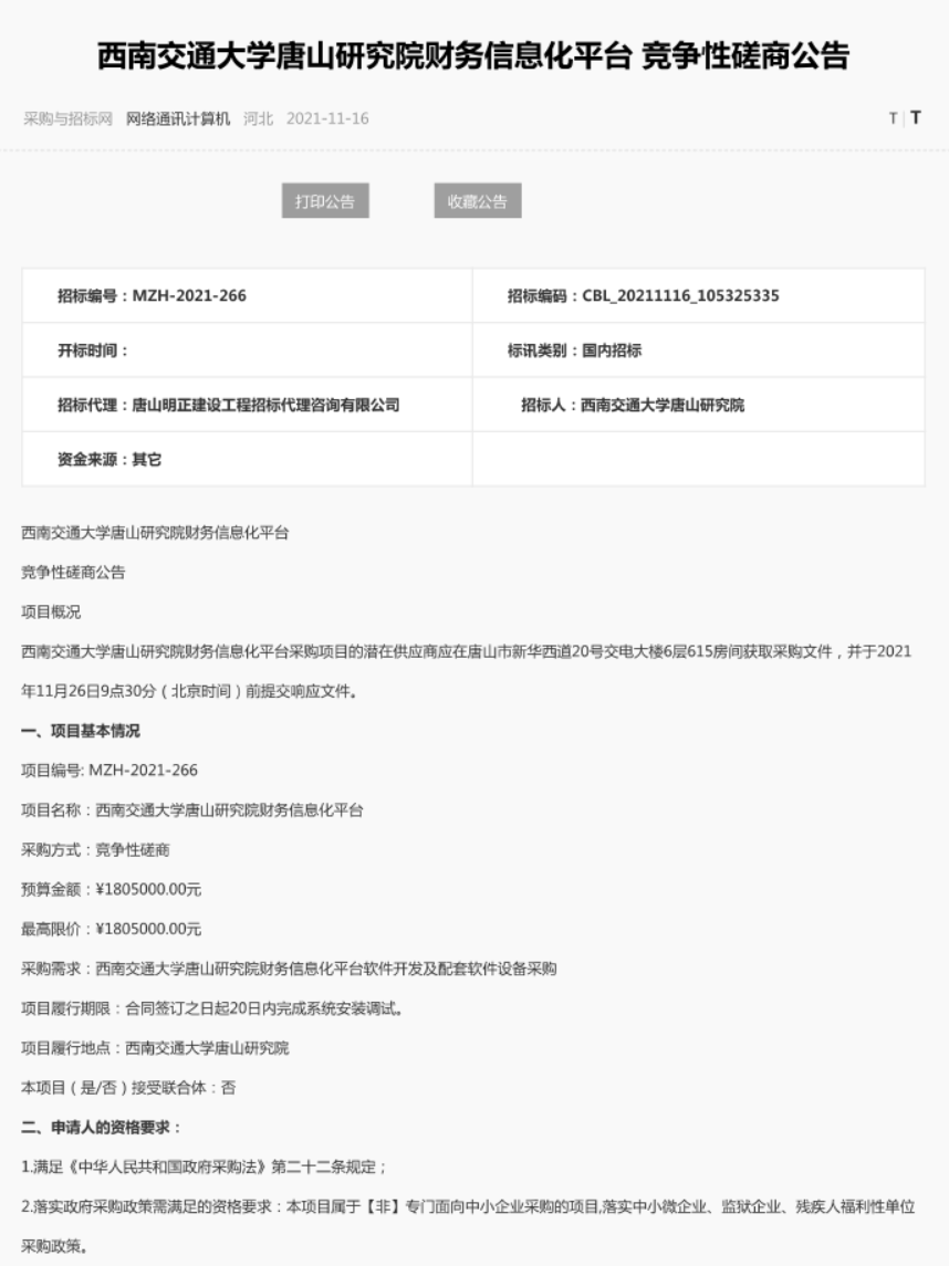 上一篇: [招标公告](TYZ002)春满四合院 高校物联网资产管理平台竞争性磋商公告