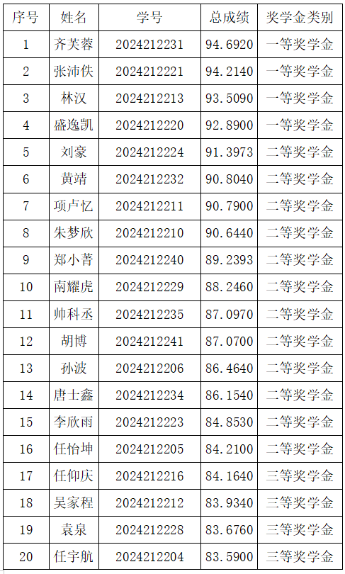 春满四合院 2024级硕士研究生2024-2025学年学业奖学金公示