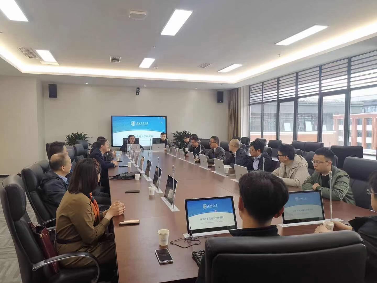 随后,刘伟书记、钱晓群院长一行与宜宾研究院王鹰院长,罗霄副院长、杨韵副院长进行了座谈,双方就异地研究院、研究生院发展特色、校地合作路径和人才培养模式等方面进行了深入细致的交流和研讨。