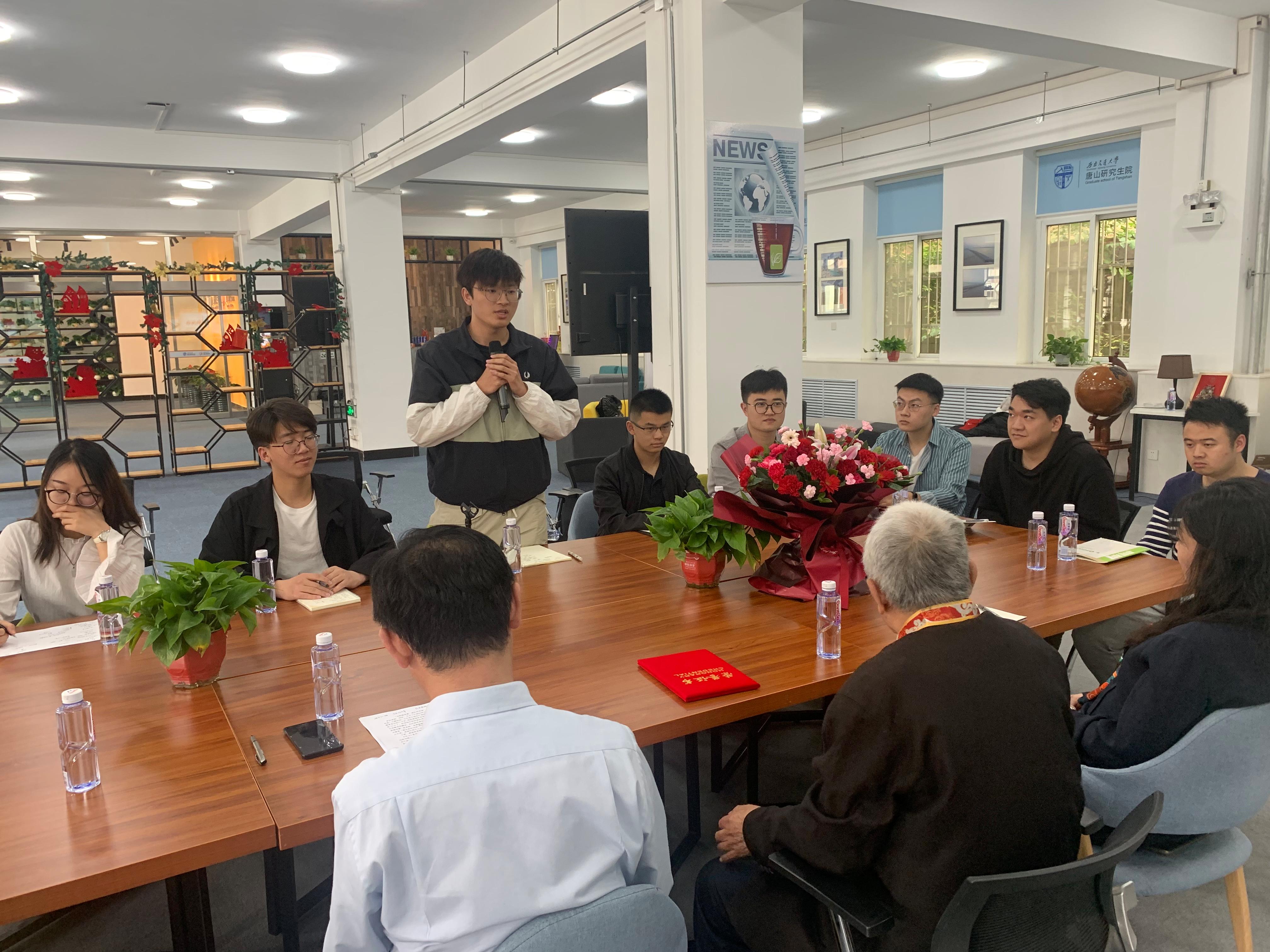 2020级学生吴磊代表全体学生党员向张恩臣老师献上鲜花,并表达了对张老的敬意,他说到,新时代的年轻党员要向老一辈党员同志和老一辈交大人学习,守初心,担责任,把为党、为国家、为人民奉献当作毕生的使命。