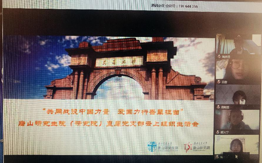 在疫情防控阻击战进入最关键的阶段,为进一步深入学习贯彻习近平总书记关于新冠肺炎疫情防控工作系列重要讲话精神,落实《新时代爱国主义教育实施纲要》文件精神,充分调动发挥抗“疫”斗争中党支部的战斗堡垒作用和党员的先锋模范作用,3月5日下午3点,唐山研究生院学生党支部组织召开了一次别开生面的“云上”专题组织生活会。会议围绕“共同战疫中国力量 爱国力行吾辈担当”主题,深入学习习近平总书记关于新冠肺炎疫情防控工作系列重要讲话精神、学习疫情期间涌现出来的先进人物事迹,支部29名学生党员全部参加会议,教学与学生工作办公室主任贾诚主持会议,院党总支书记刘伟参加会议。