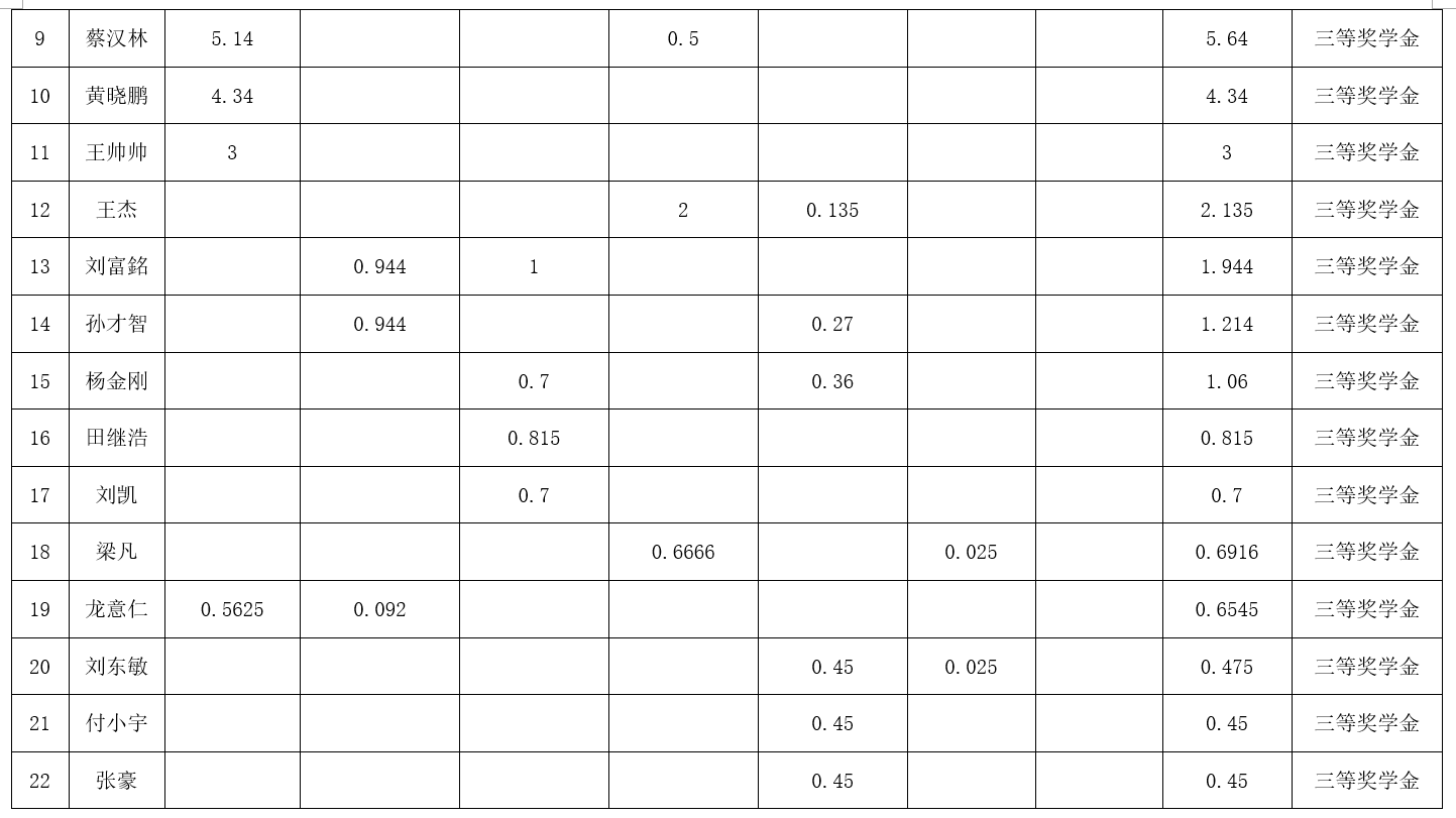 2022年度第十二次党政联席会决定,增设四等奖学金,奖学金金额为2000元。现将2020级2021-2022学年研究生学业奖学金获奖名单公示如下: