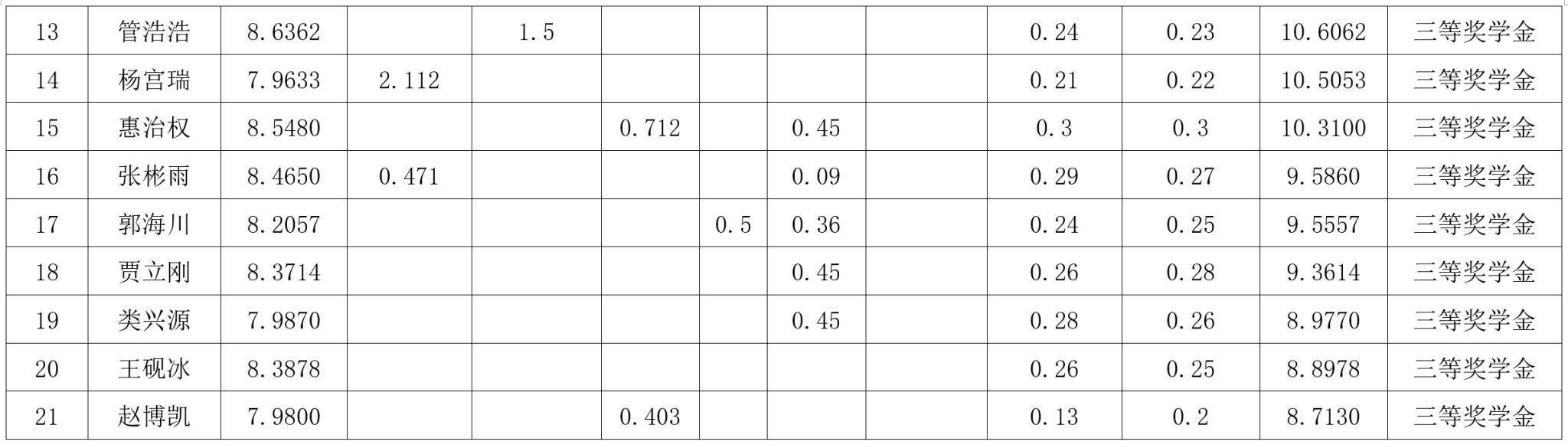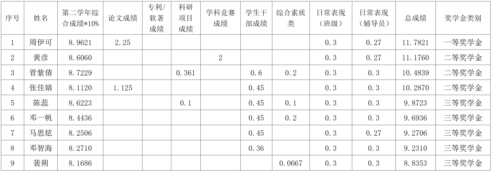 2022级2023-2024学年学业奖学金公示