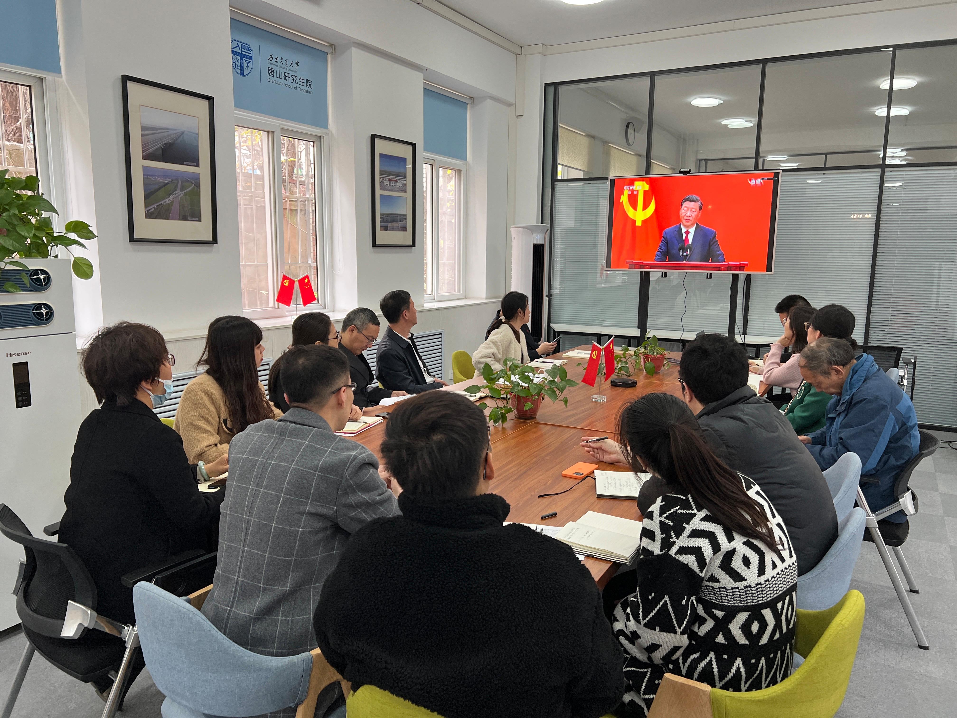 党委开展党的二十大精神教职工第三次集体学习。全体教职工集体观看“习近平总书记等中央政治局常委同中外记者见面会”,并学习了习近平总书记在见面会上的重要讲话内容。唐院全体教职工一致表示,习近平总书记在中外记者见面会上的重要讲话,充满自信、充满坚定、充满情怀。今后还将逐字逐句、原原本本、反反复复研读习近平总书记的重要指示,进一步深刻领悟“两个确立”的决定性意义,不断增强“四个意识”、坚定“四个自信”、做到“两个维护”,努力为党育人,为国育才,为全面建设社会主义现代化国家、全面推进中华民族伟大复兴作出新贡献。