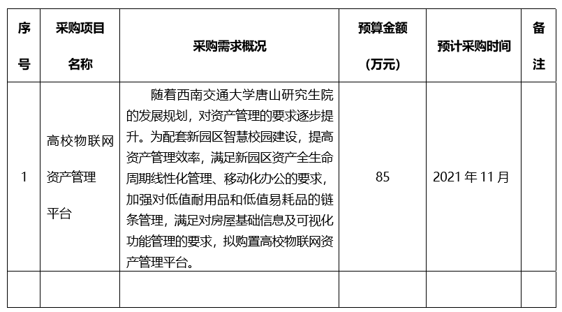 为便于供应商及时了解本单位采购信息,现将春满四合院 高校物联网资产管理平台采购意向公开如下:
